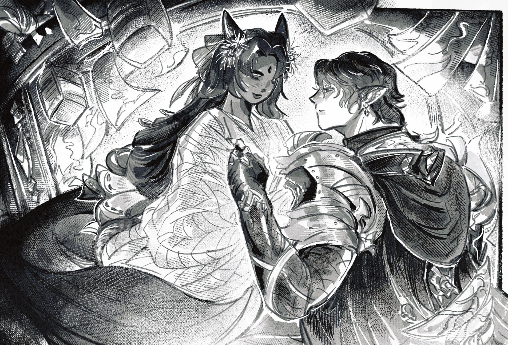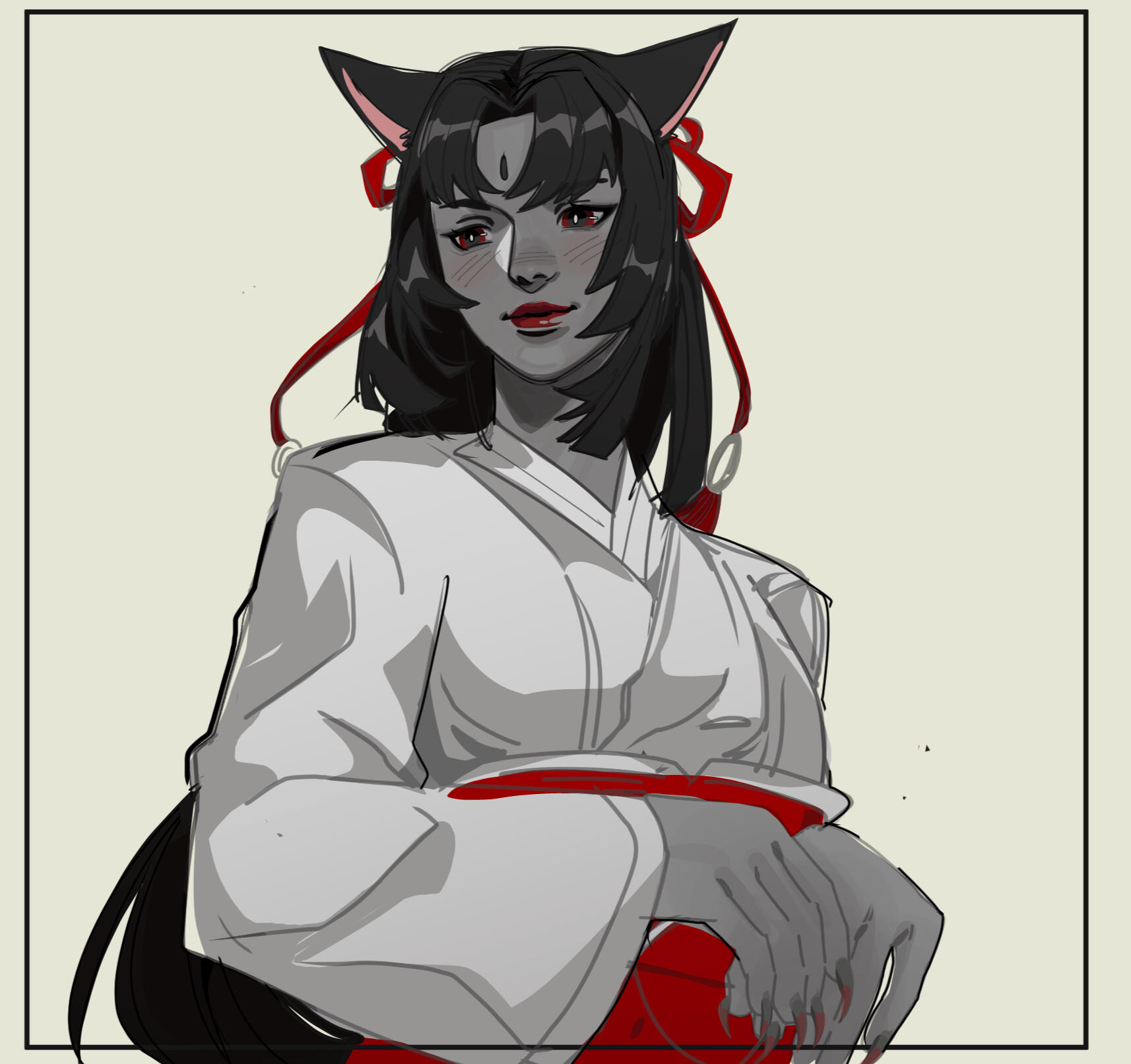 * Stillborn and the Death of her mother, Rinh found her (re)birth as the living vessel of a nameless kami; the her that is both herself and not herself. In a small shrine near the foot of Mount Rokkon, she was raised away from her wandering clan as both the divine and devout. When Hiroshi came to find his peace, her soul recognized its Shard and Hiroshi bade her go West as his last wish.
